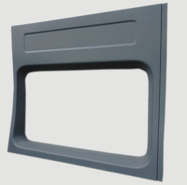 Ramka okienna wykonana z włókna szklanego/ laminatu poliestrowego, bardzo lekka i odporna na uszkodzenia mechaniczne, działanie środków chemicznych, olejów oraz smarów. Posiada fakturę oryginalnych elementów tapicerskich, bardzo łatwo poddaje się czyszczeniu. Dobre dopasowanie do pozostałych części samochodu pozwala na szybkie zamontowanie. Nadaje się do samodzielnego montażu przy użyciu spinek tapicerskich, kleju, taśmy dwustronnie klejącej lub wkrętów.