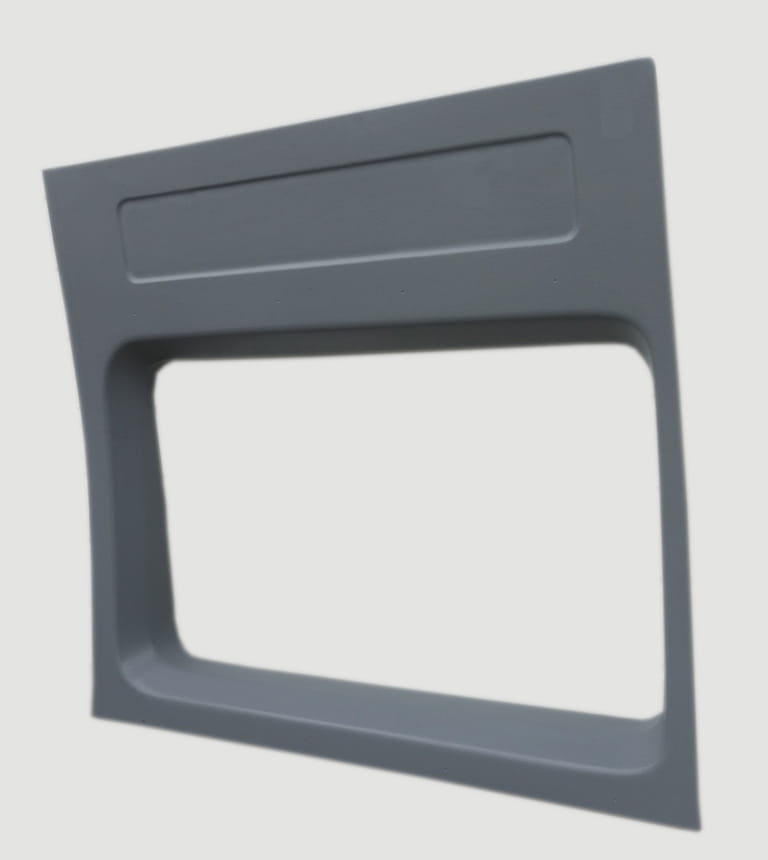 Ramka okienna wykonana z włókna szklanego/ laminatu poliestrowego, bardzo lekka i odporna na uszkodzenia mechaniczne, działanie środków chemicznych, olejów oraz smarów. Posiada fakturę oryginalnych elementów tapicerskich, bardzo łatwo poddaje się czyszczeniu. Dobre dopasowanie do pozostałych części samochodu pozwala na szybkie zamontowanie. Nadaje się do samodzielnego montażu przy użyciu spinek tapicerskich, kleju, taśmy dwustronnie klejącej lub wkrętów.